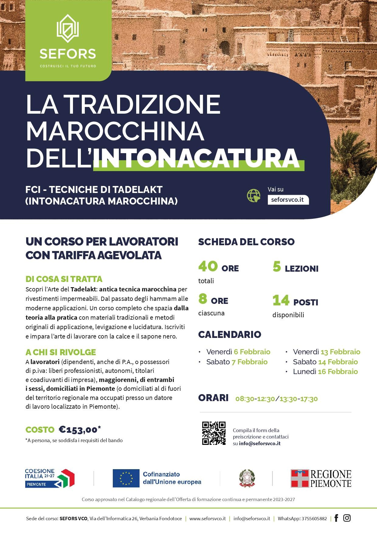 tecnica molto antica, utilizzata in origine per impermeabilizzare le cisterne per la conservazione dell’acqua potabile, e poi nei rivestimenti di ambienti umidi come gli hammam e le fontane - ha straordinarie doti di impermeabilità che sono paragonabili, se non superiori, a quelle delle malte a base di coccio pesto impiegate dai Romani per la realizzazione di acquedotti, cisterne e termae. Lezioni teoriche sulla storia della tecnica, sui materiali e gli strumenti, viene poi proposto il procedimento tradizionale originale marocchino che prevede l'applicazione di un impasto di calce debolmente idraulica e acqua, con conseguente schiacciatura, levigazione e lucidatura con sapone nero